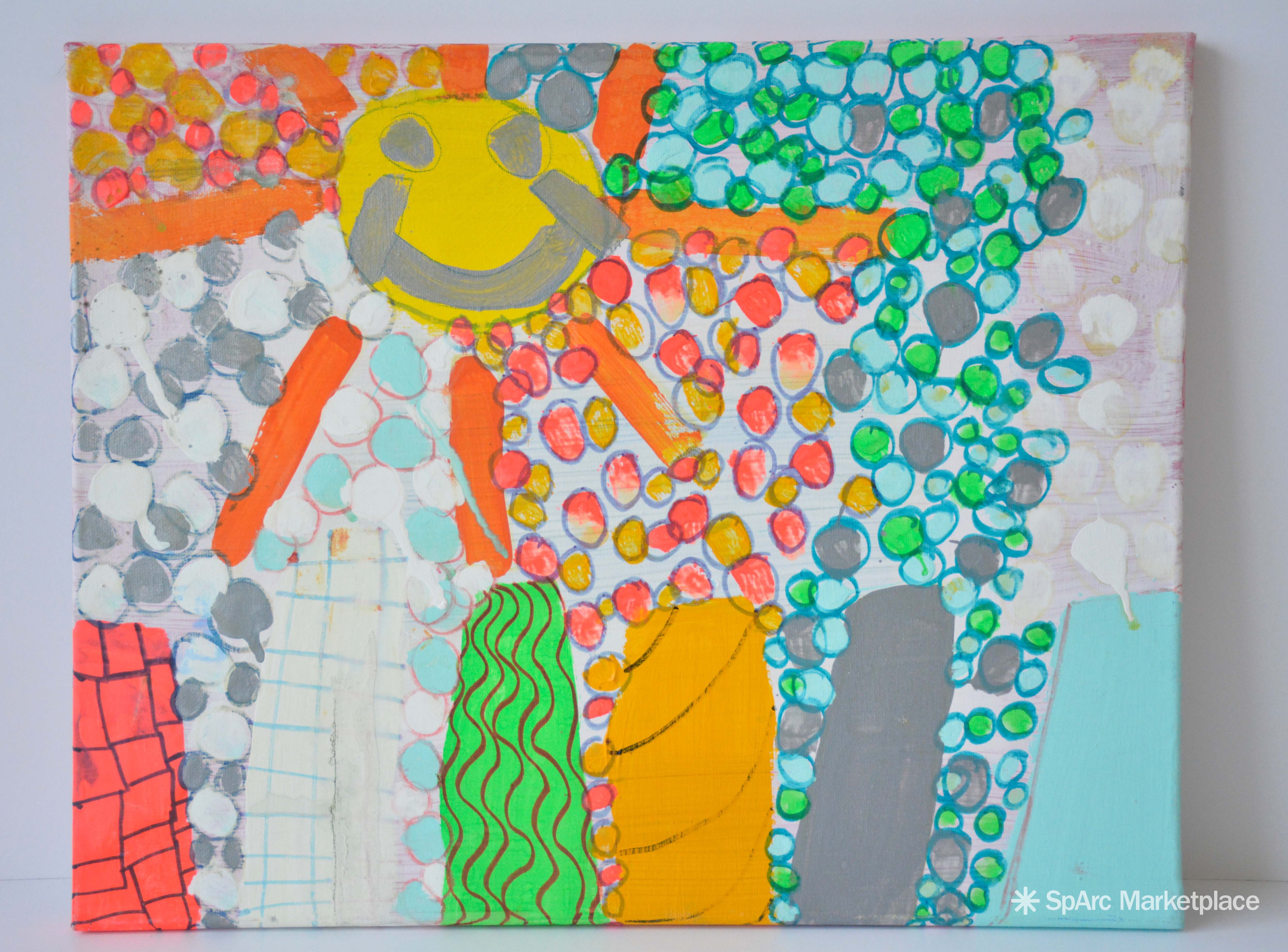 Bright fun painting with happy sun